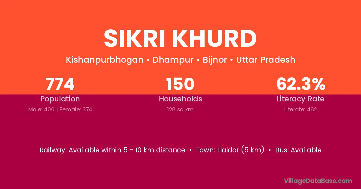 Sikri Khurd village has a total population of 7,574 people, of which 4,040 are males and 3,534 are females.