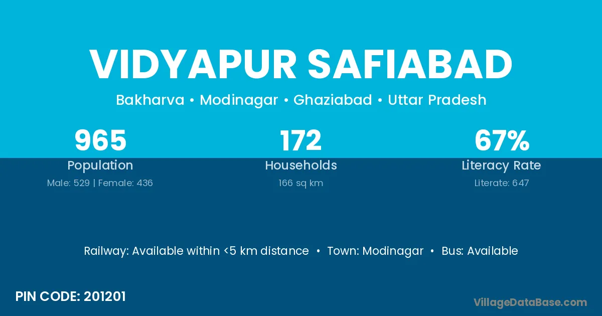 Vidyapur Safiabad village has a total population of 965 people, of which 529 are males and 436 are females.