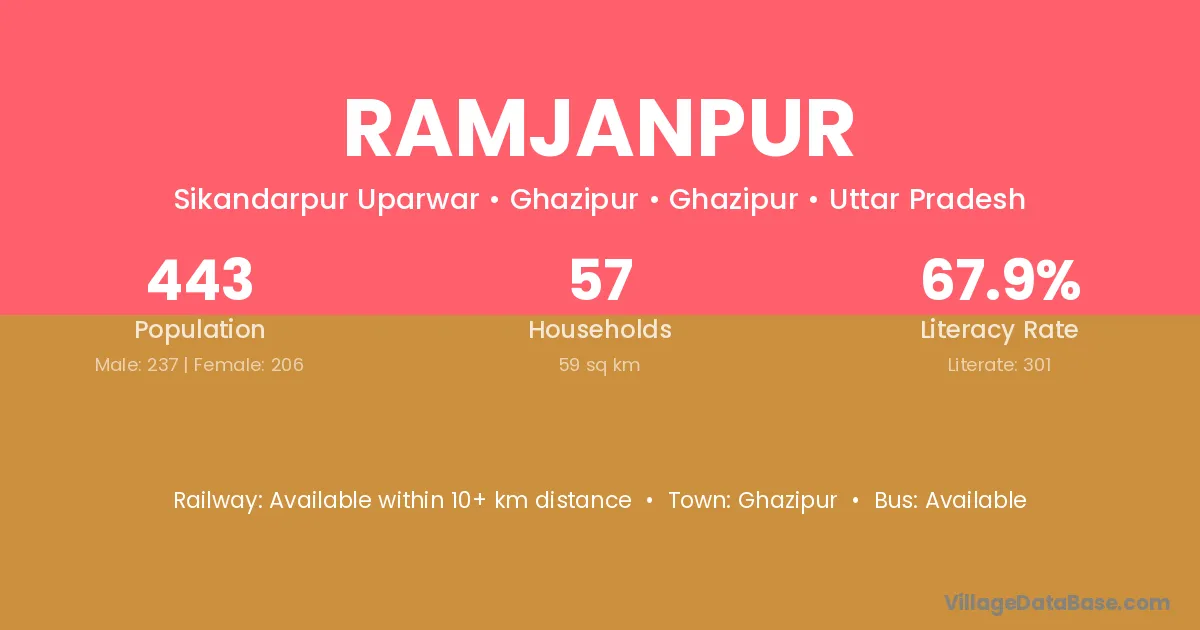 Ramjanpur village has a total population of 443 people, of which 237 are males and 206 are females.