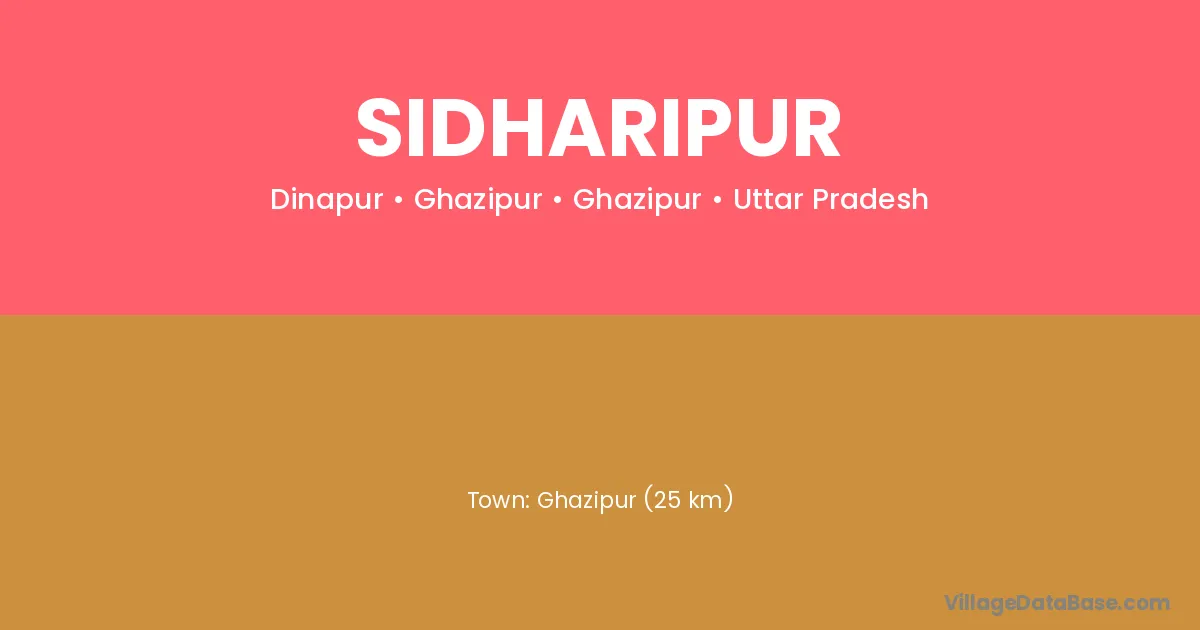 Ghazipur (25 km) is the nearest town to Sidharipur village for major economic activities and is located approximately 25 km away.