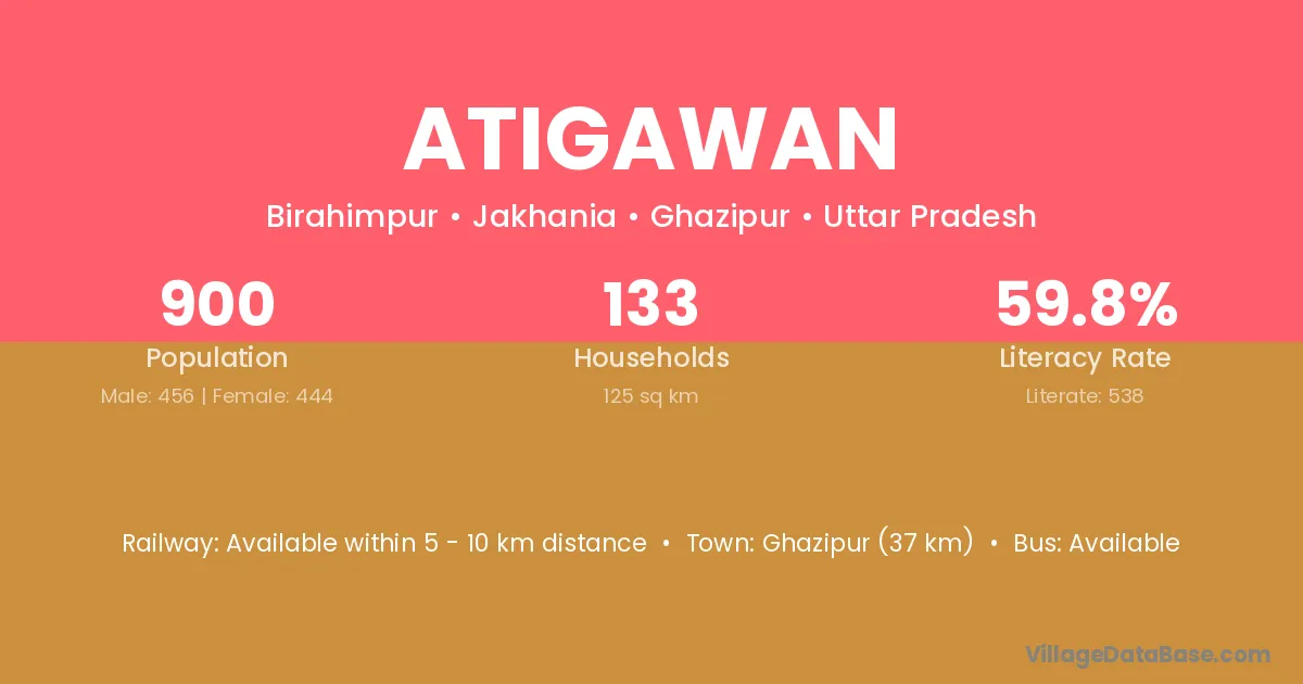 Atigawan village has a total population of 900 people, of which 456 are males and 444 are females.