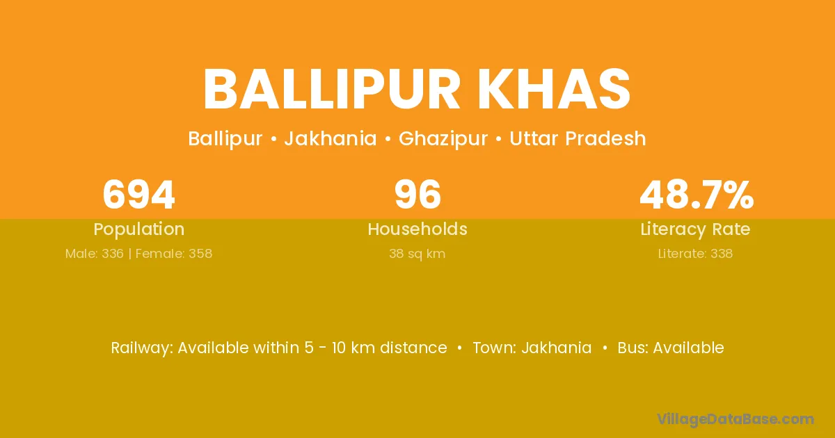 Ballipur Khas village has a total population of 694 people, of which 336 are males and 358 are females.