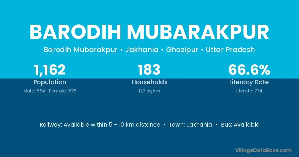Jakhania is the nearest town to Barodih Mubarakpur village for major economic activities