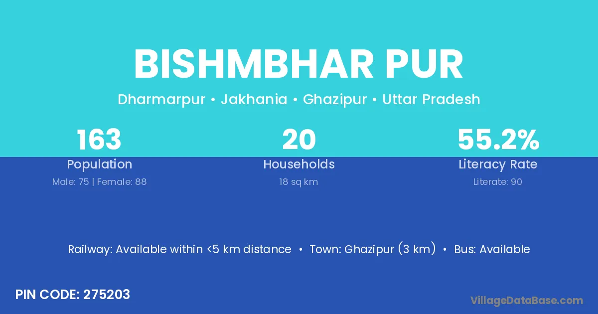 Ghazipur (3 km) is the nearest town to Bishmbhar Pur village for major economic activities and is located approximately 3 km away.
