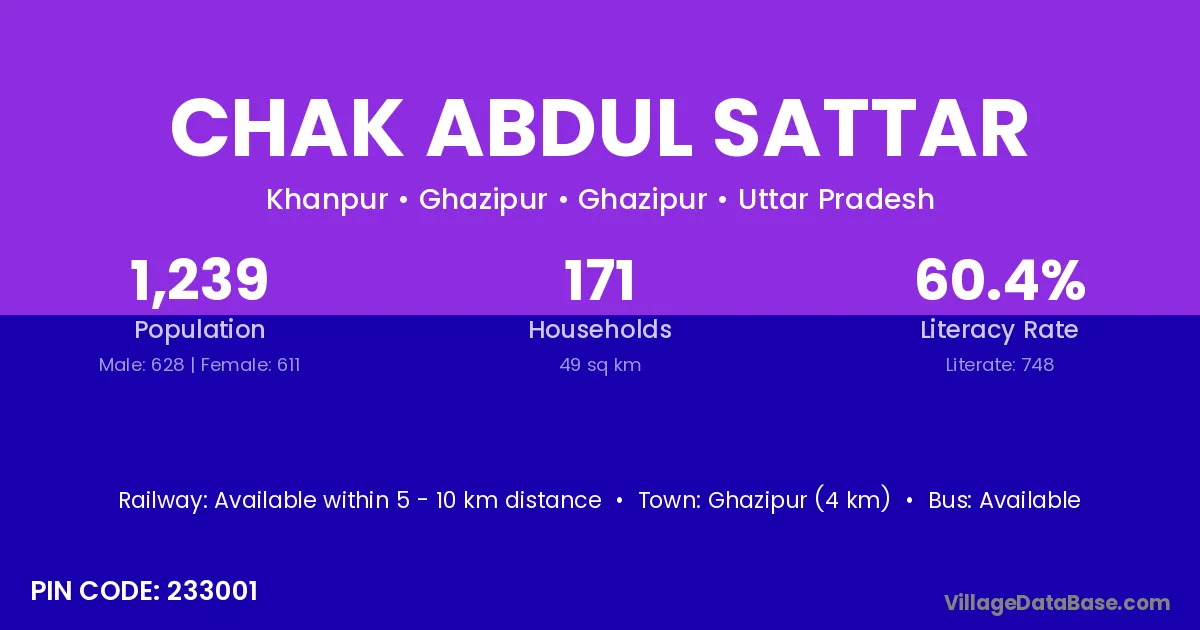 Chak Abdul Sattar village is located in the Jakhania Tehsil of the Ghazipur district in Uttar Pradesh .