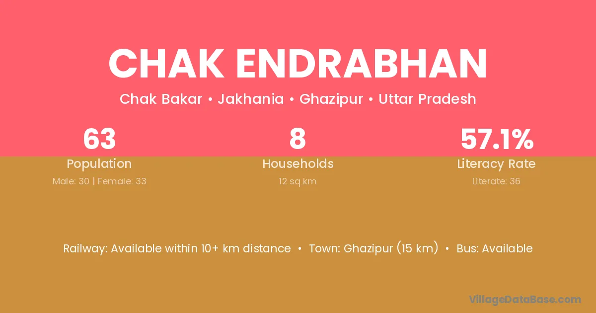 Ghazipur (15 km) is the nearest town to Chak Endrabhan village for major economic activities and is located approximately 15 km away.