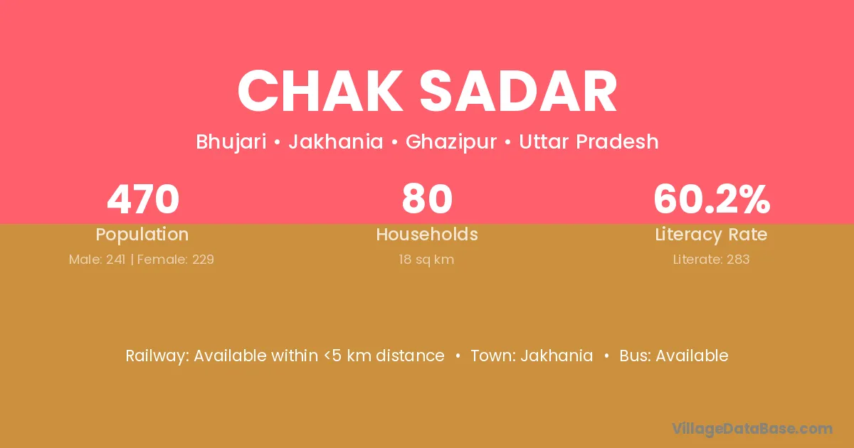 Jakhania is the nearest town to Chak Sadar village for major economic activities