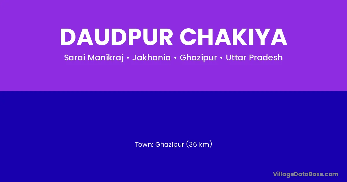 Ghazipur (36 km) is the nearest town to Daudpur Chakiya village for major economic activities and is located approximately 36 km away.