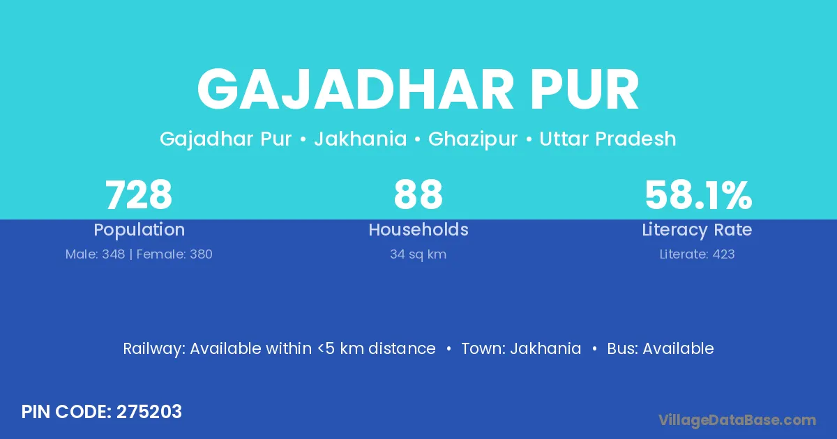 Jakhania is the nearest town to Gajadhar Pur village for major economic activities
