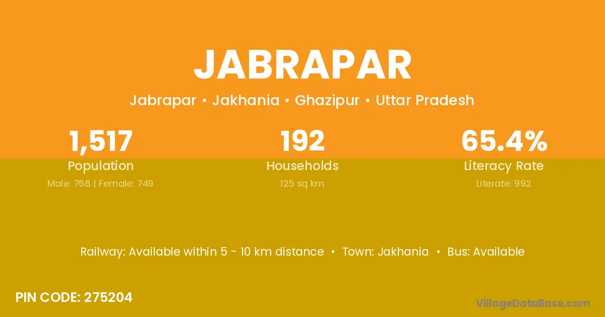 Jabrapar village has a total population of 1,517 people, of which 768 are males and 749 are females.