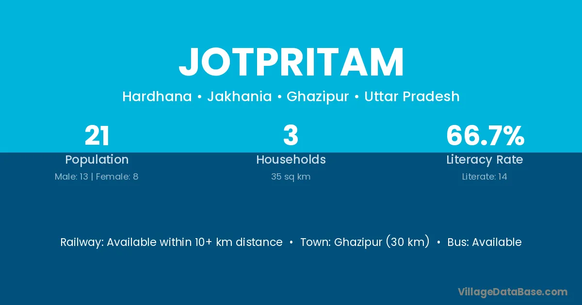 Ghazipur (30 km) is the nearest town to Jotpritam village for major economic activities and is located approximately 30 km away.