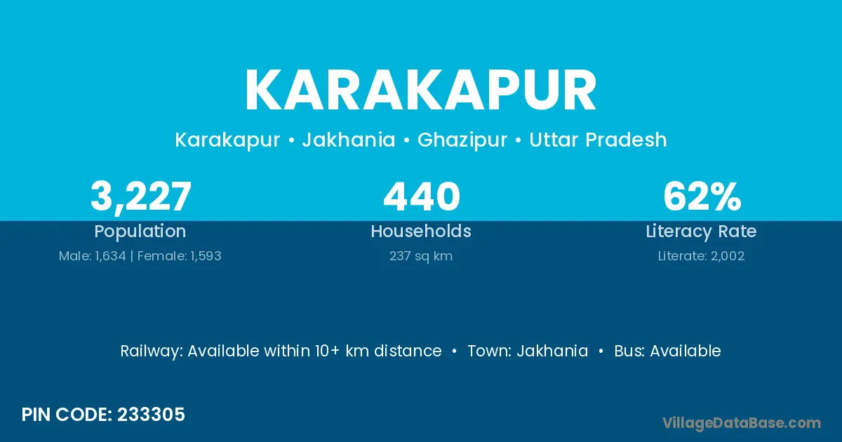 Jakhania is the nearest town to Karakapur village for major economic activities