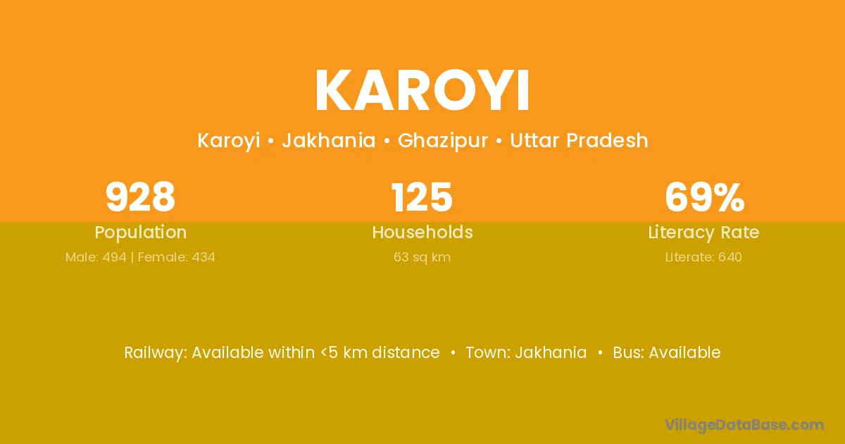 Jakhania is the nearest town to Karoyi village for major economic activities