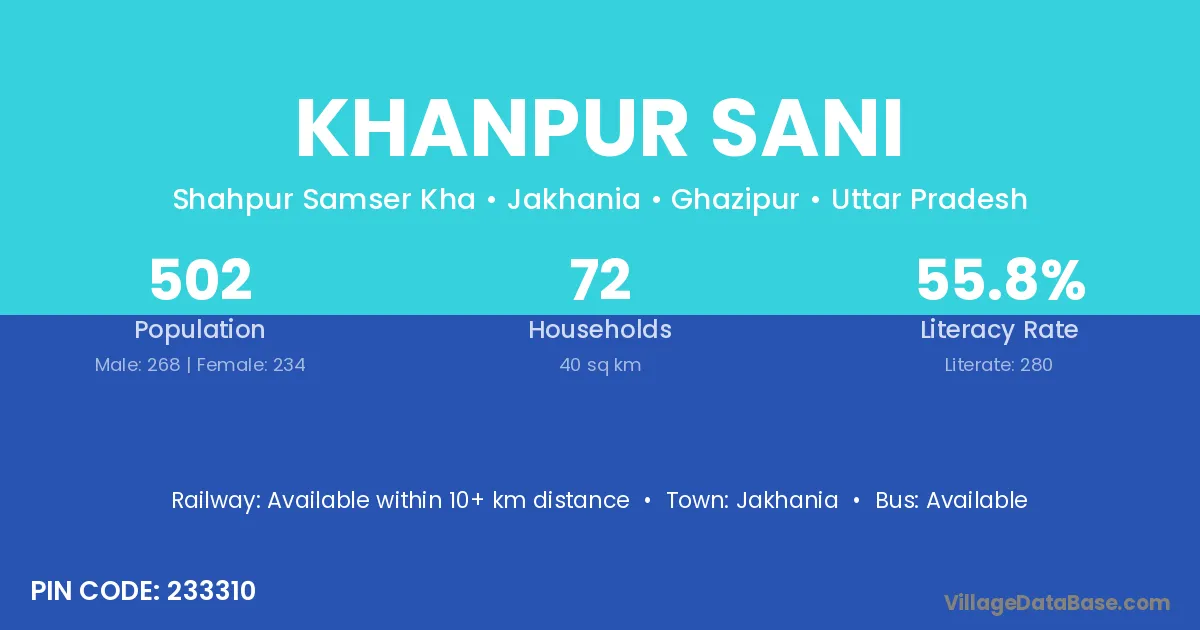 Jakhania is the nearest town to Khanpur Sani village for major economic activities
