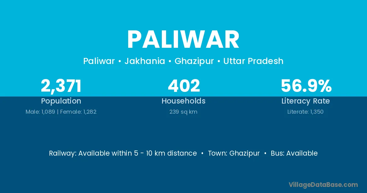 Ghazipur is the nearest town to Paliwar village for major economic activities
