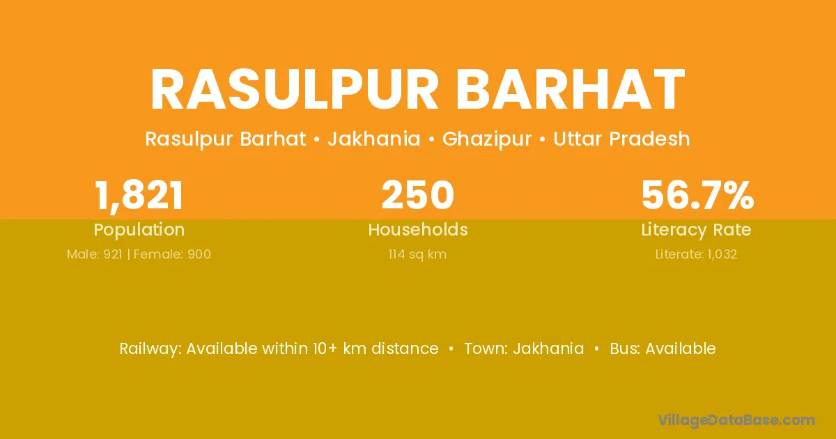 Rasulpur Barhat village has a total population of 1,821 people, of which 921 are males and 900 are females.