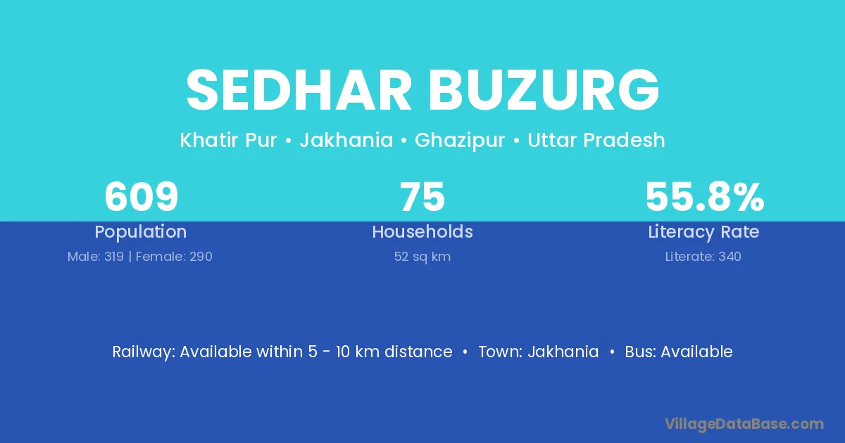 Sedhar Buzurg village has a total population of 609 people, of which 319 are males and 290 are females.