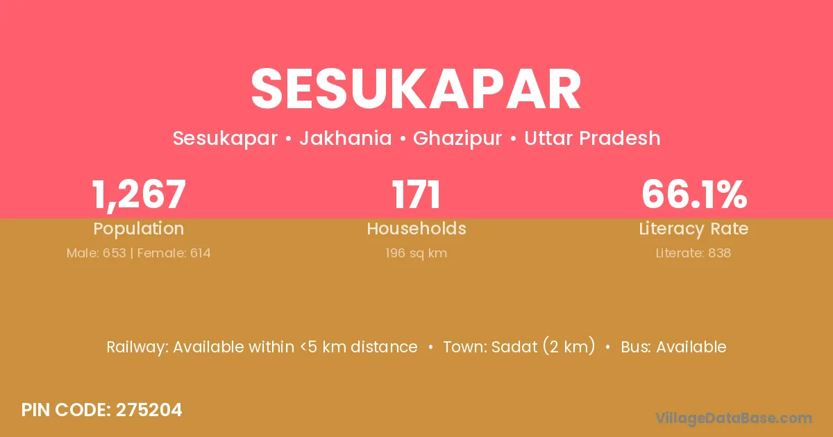 Sesukapar village has a total population of 1,267 people, of which 653 are males and 614 are females.