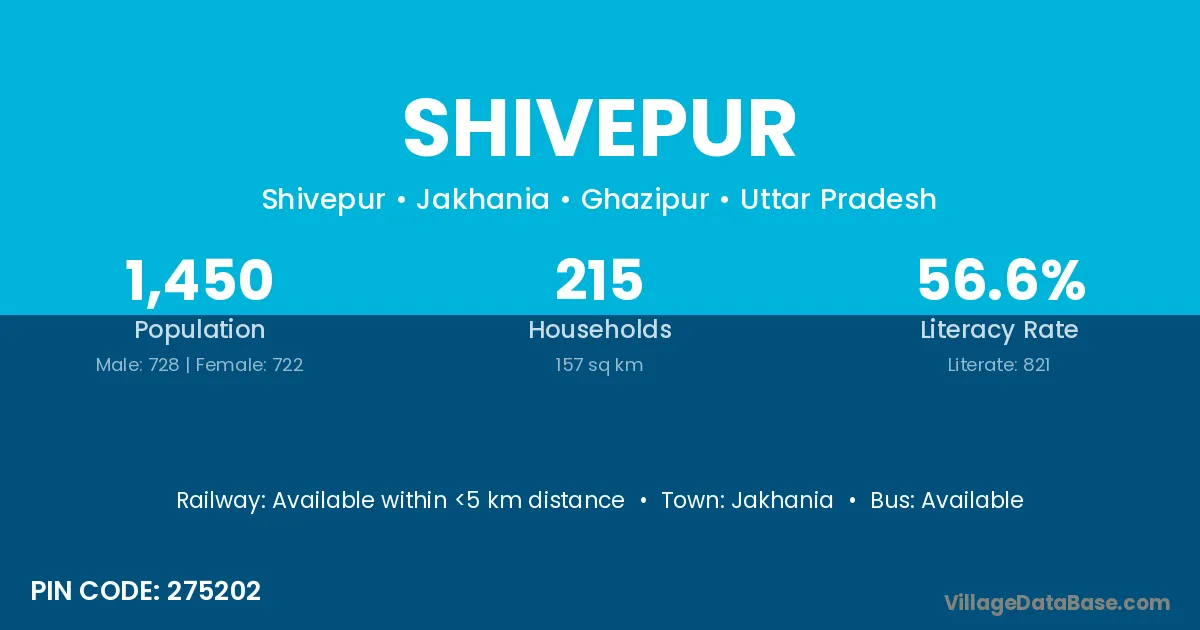 Shivepur village has a total population of 1,450 people, of which 728 are males and 722 are females.