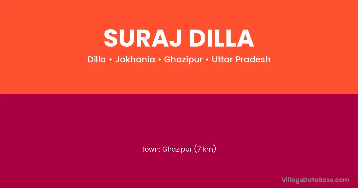 Ghazipur (7 km) is the nearest town to Suraj Dilla village for major economic activities and is located approximately 7 km away.