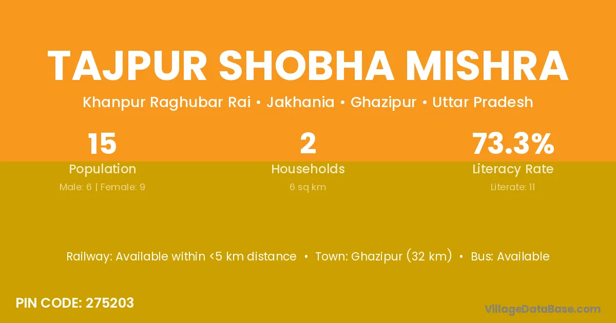 Tajpur Shobha Mishra village is located in the Jakhania Tehsil of the Ghazipur district in Uttar Pradesh .
