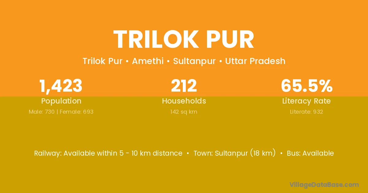 Ghazipur (18 km) is the nearest town to Trilok Pur village for major economic activities and is located approximately 18 km away.