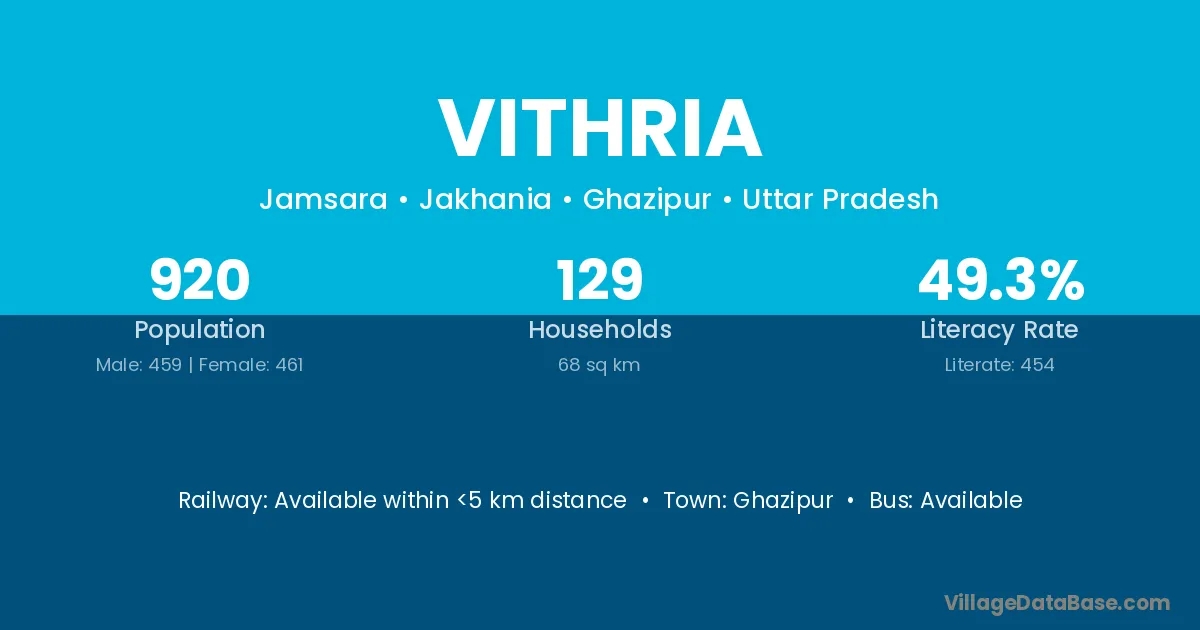 Ghazipur is the nearest town to Vithria village for major economic activities