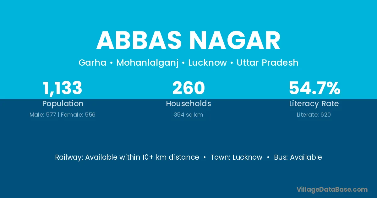 The literacy rate of Abbas Nagar village is 50.87%. Male literacy stands at 60.76% and female literacy at 38.76%.