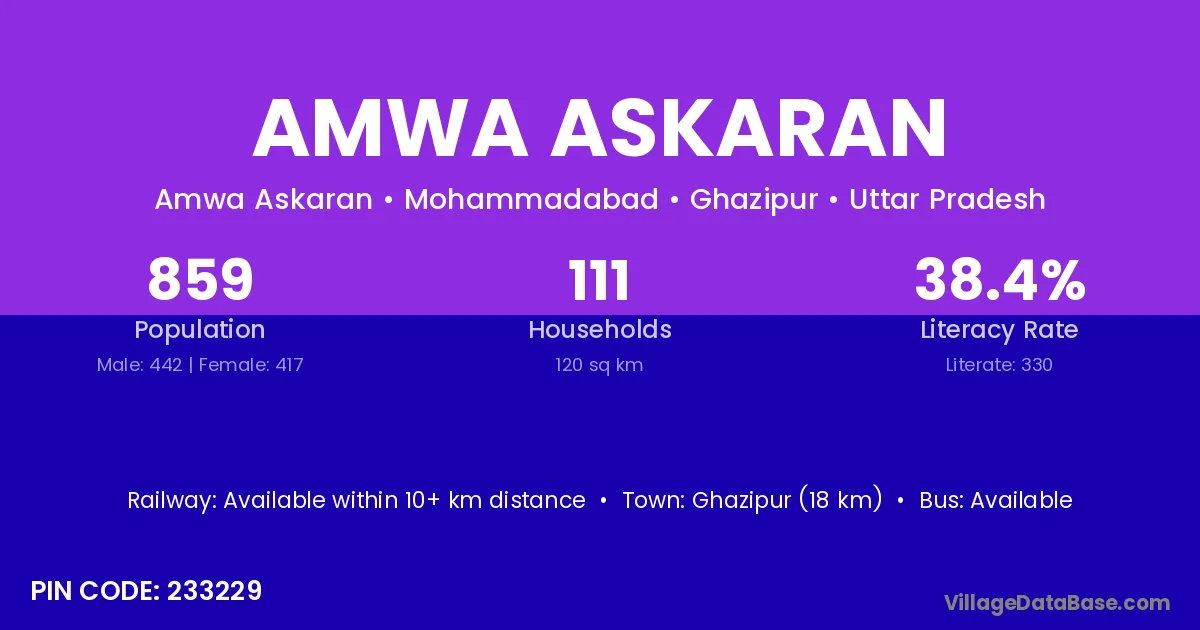 Amwa Askaran village has a total population of 859 people, of which 442 are males and 417 are females.