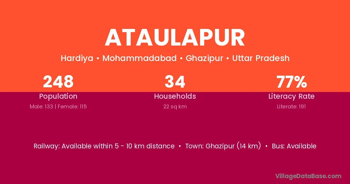 Ghazipur (14 km) is the nearest town to Ataulapur village for major economic activities and is located approximately 14 km away.