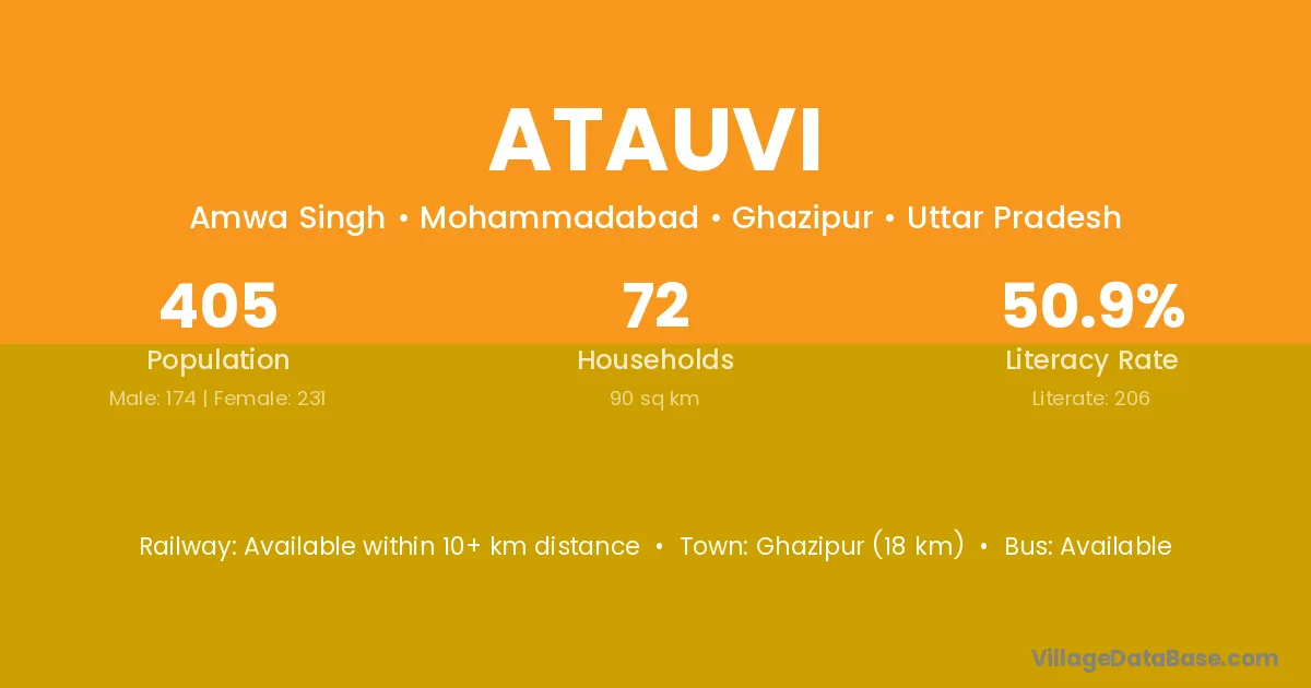 Ghazipur (18 km) is the nearest town to Atauvi village for major economic activities and is located approximately 18 km away.