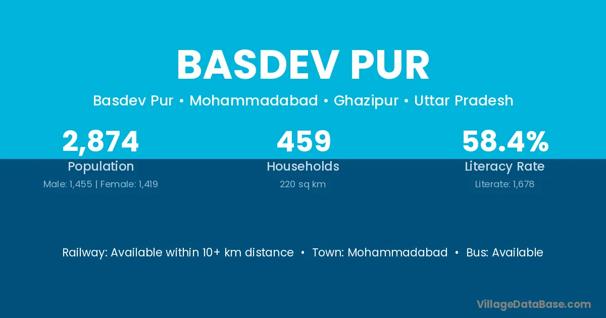 Basdev Pur village has a total population of 2,874 people, of which 1,455 are males and 1,419 are females.
