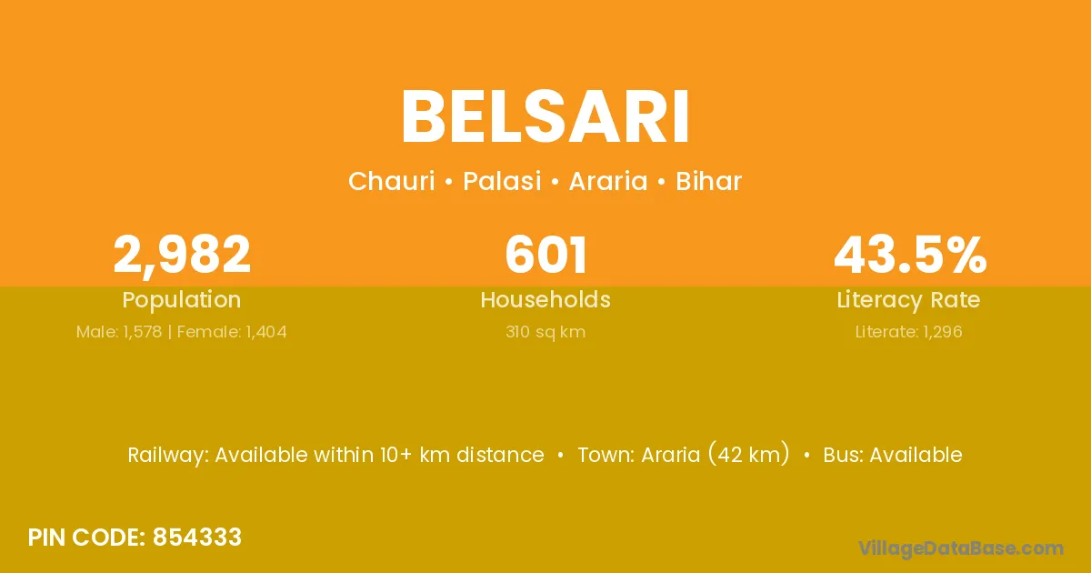 There are approximately 301 households in Belsari village.
