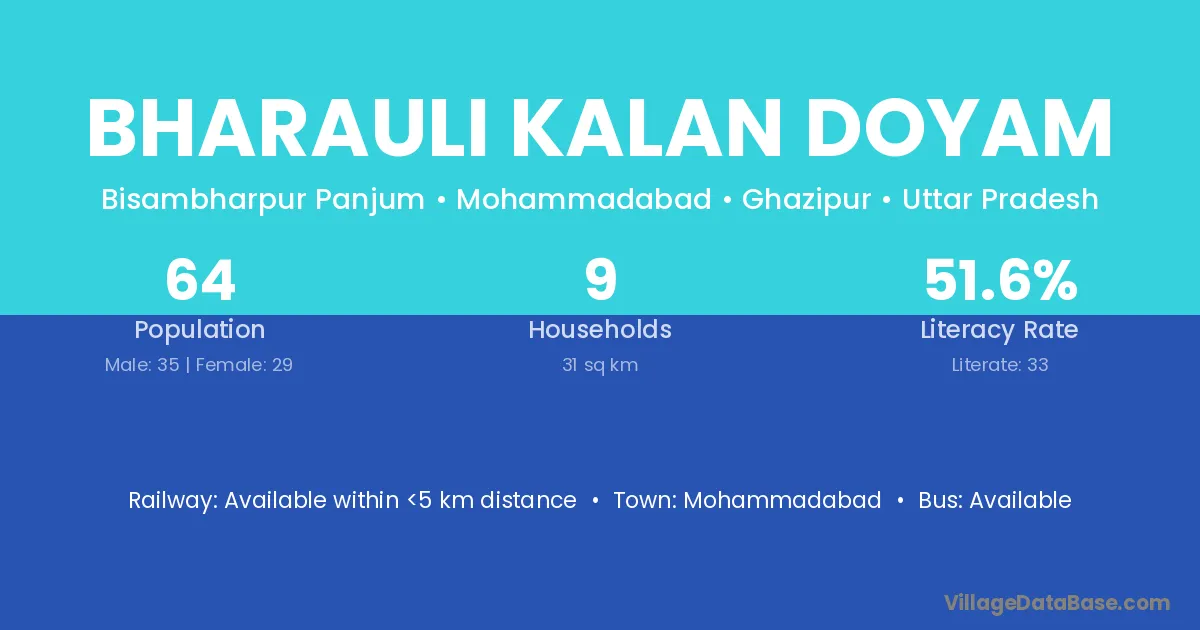 There are approximately 9 households in Bharauli Kalan Doyam village.