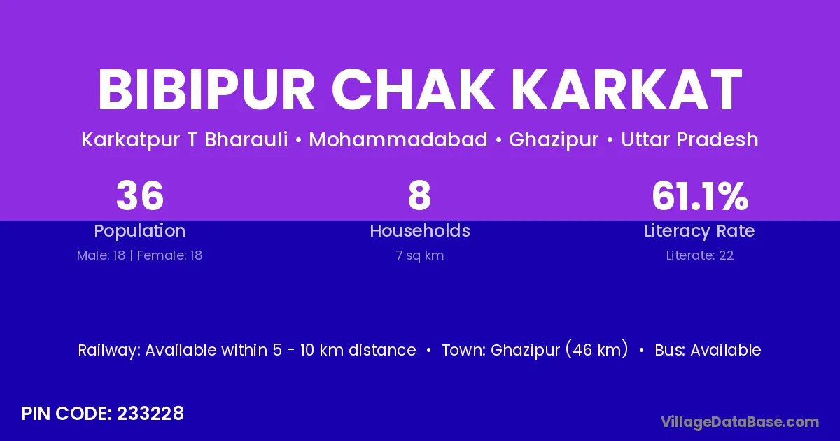 Bibipur Chak Karkat village is located in the Mohammadabad Tehsil of the Ghazipur district in Uttar Pradesh .