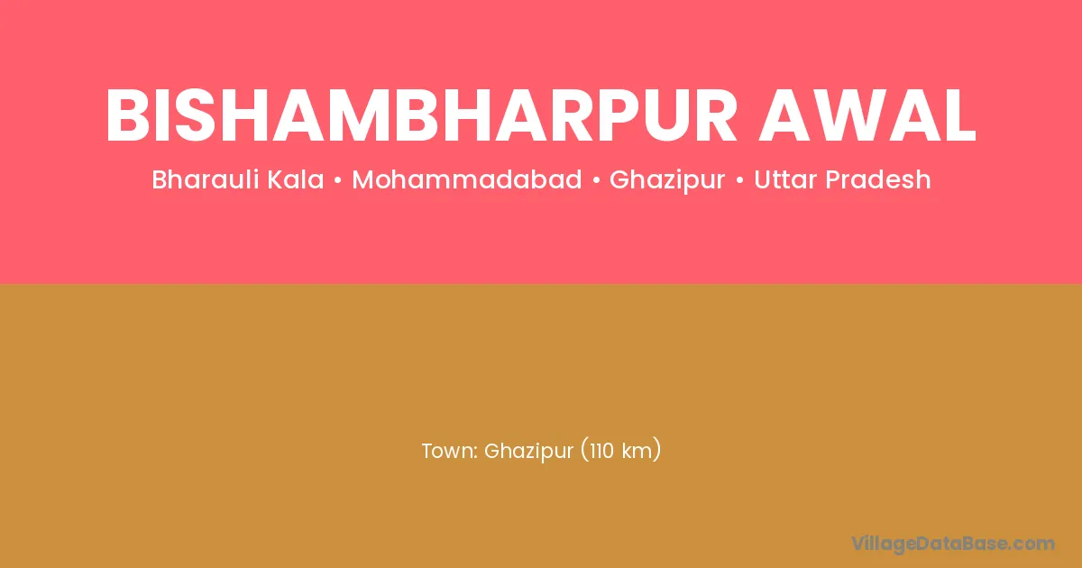 Ghazipur (110 km) is the nearest town to Bishambharpur Awal village for major economic activities and is located approximately 110 km away.