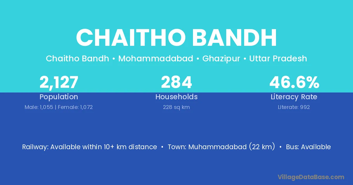 Muhammadabad (22 km) is the nearest town to Chaitho Bandh village for major economic activities and is located approximately 22 km away.