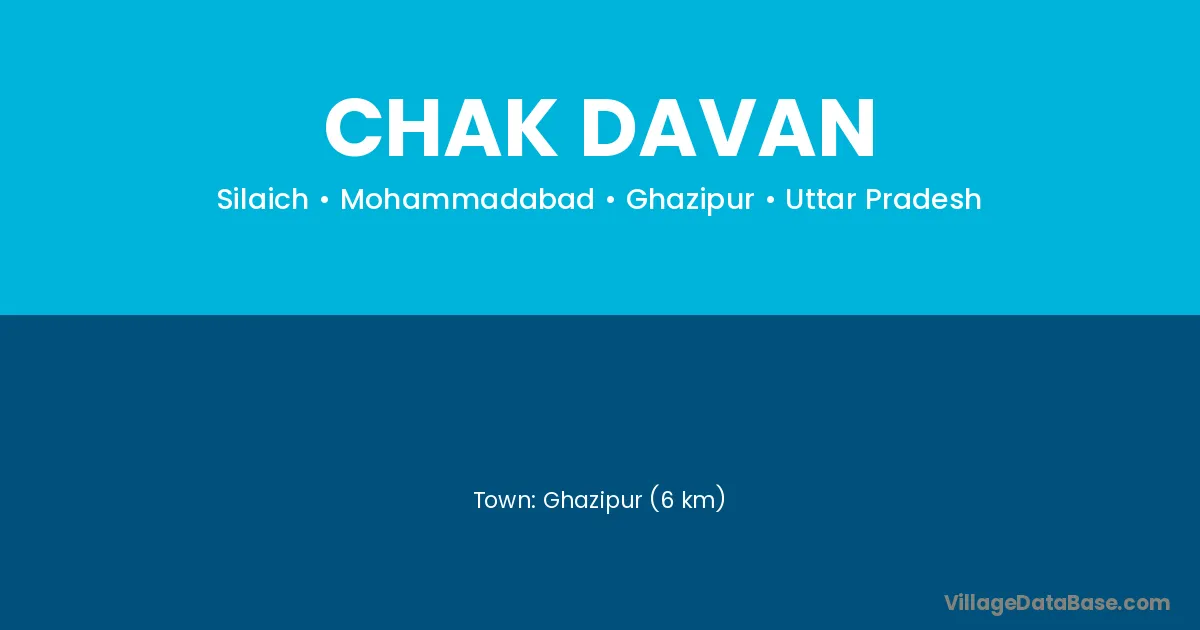 Ghazipur (6 km) is the nearest town to Chak Davan village for major economic activities and is located approximately 6 km away.