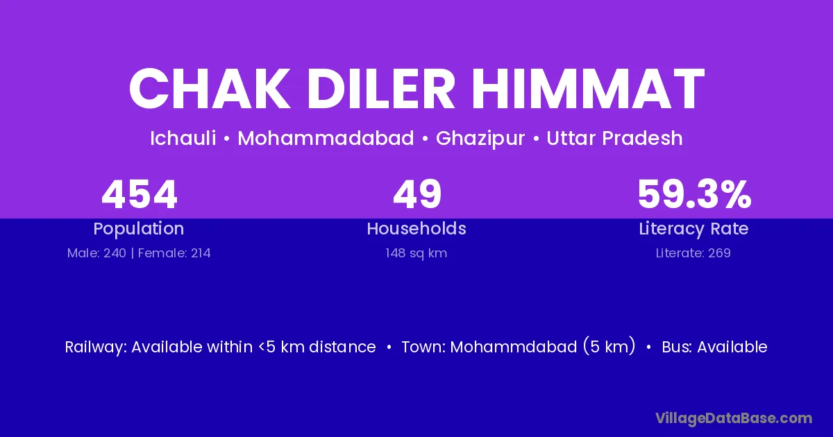 Mohammdabad (5 km) is the nearest town to Chak Diler Himmat village for major economic activities and is located approximately 5 km away.