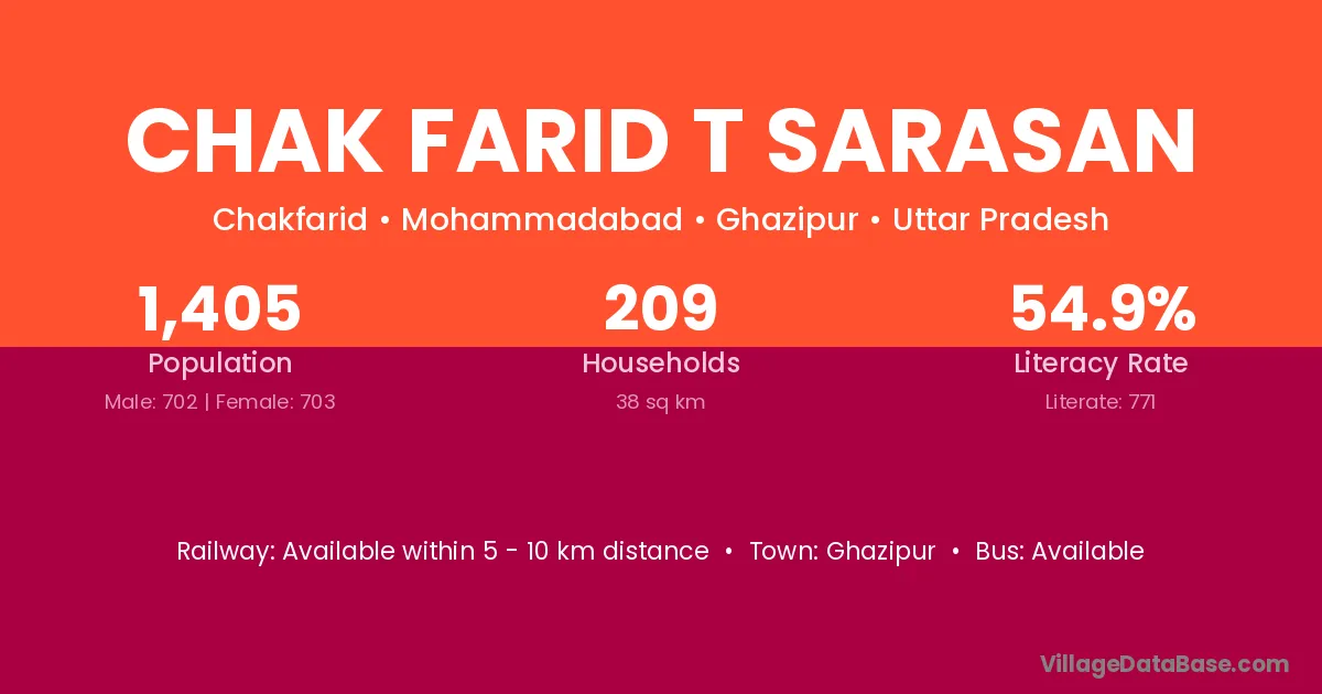Ghazipur is the nearest town to Chak Farid T Sarasan village for major economic activities