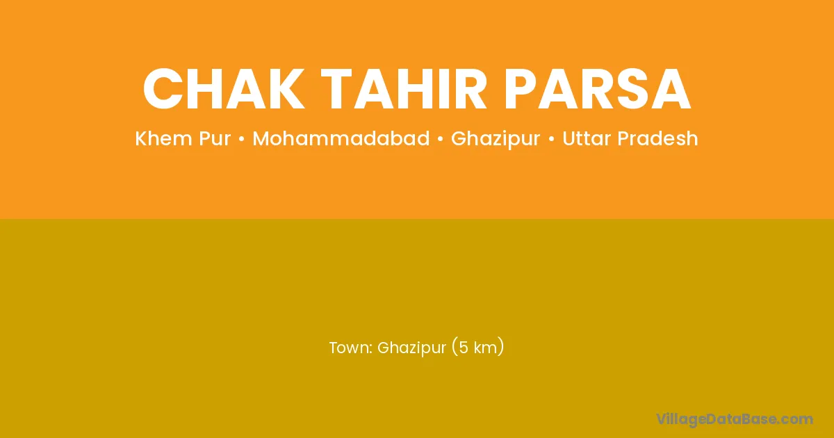 Ghazipur (5 km) is the nearest town to Chak Tahir Parsa village for major economic activities and is located approximately 5 km away.