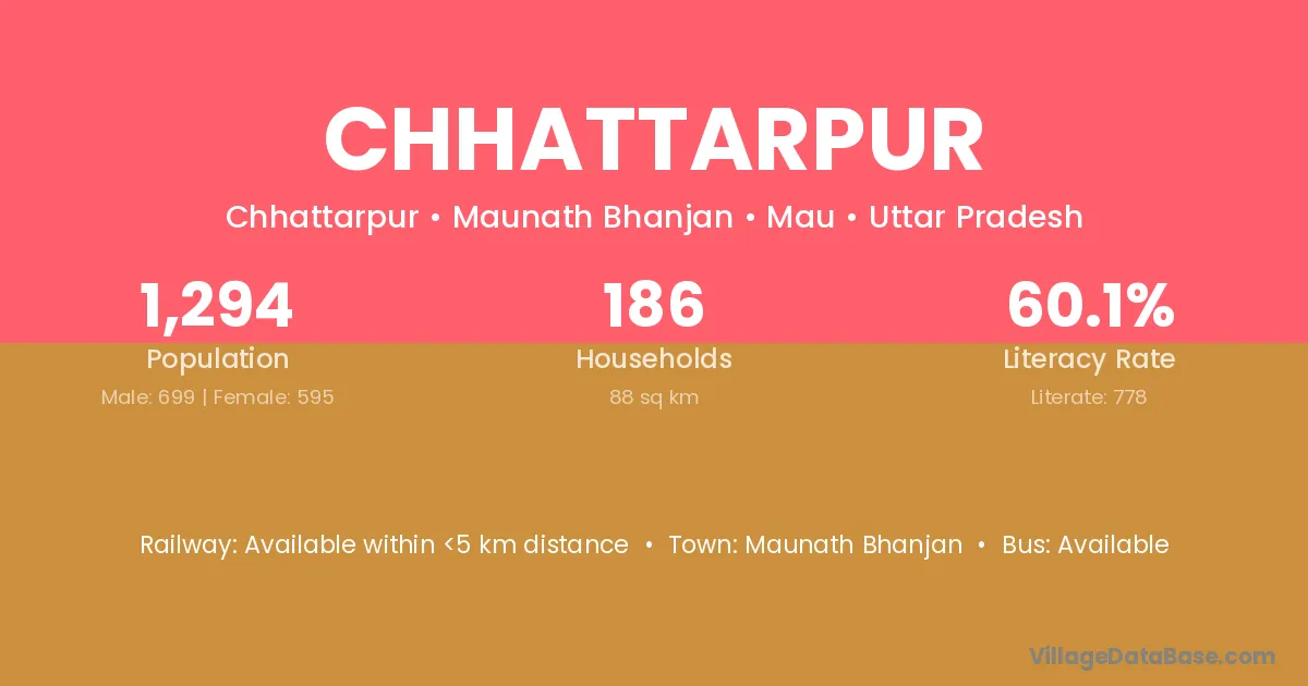 Muhammadbad (7 km) is the nearest town to Chhattarpur village for major economic activities and is located approximately 7 km away.