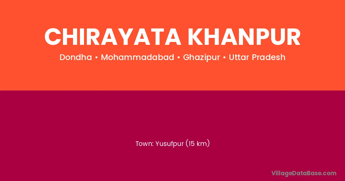 Yusufpur (15 km) is the nearest town to Chirayata Khanpur village for major economic activities and is located approximately 15 km away.