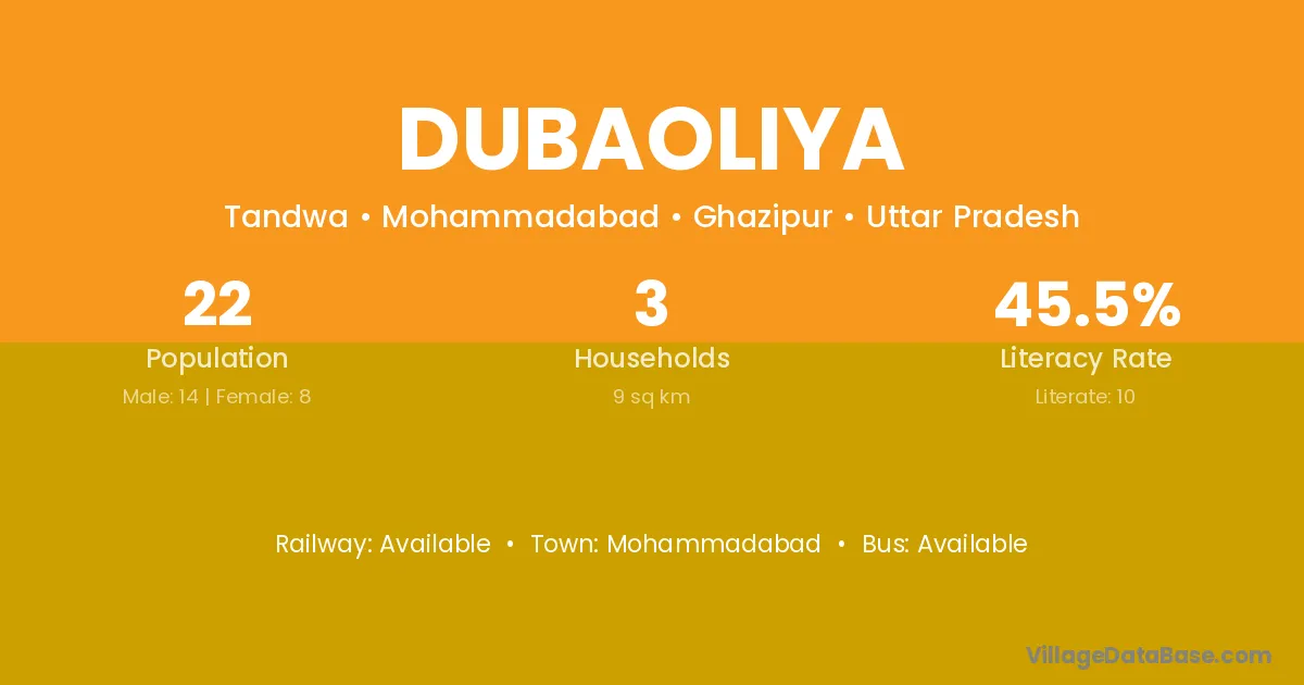Mohammadabad is the nearest town to Dubaoliya village for major economic activities