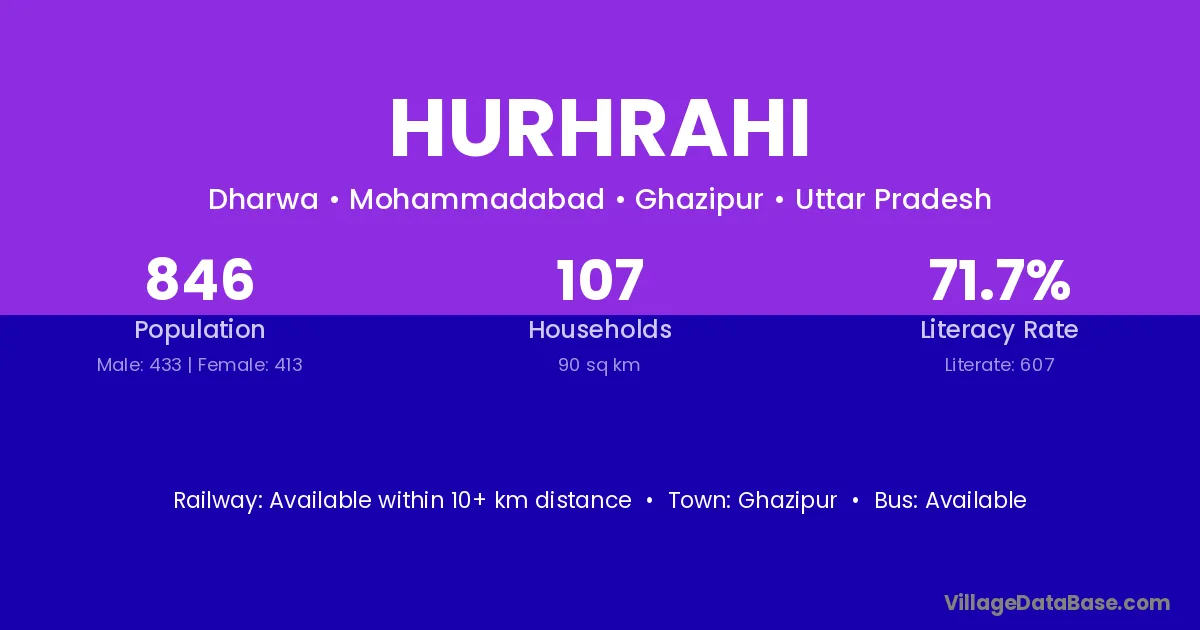 Ghazipur is the nearest town to Hurhrahi village for major economic activities