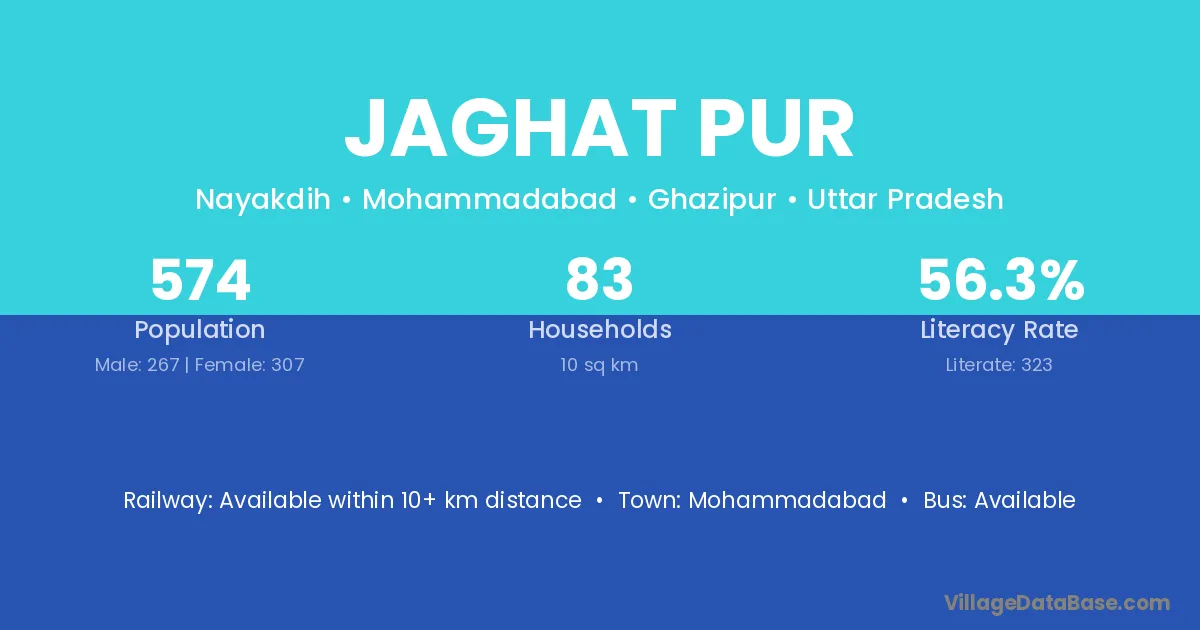 Jaghat Pur village has a total population of 574 people, of which 267 are males and 307 are females.