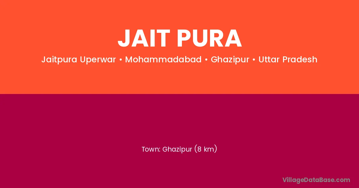 Ghazipur (8 km) is the nearest town to Jait Pura village for major economic activities and is located approximately 8 km away.