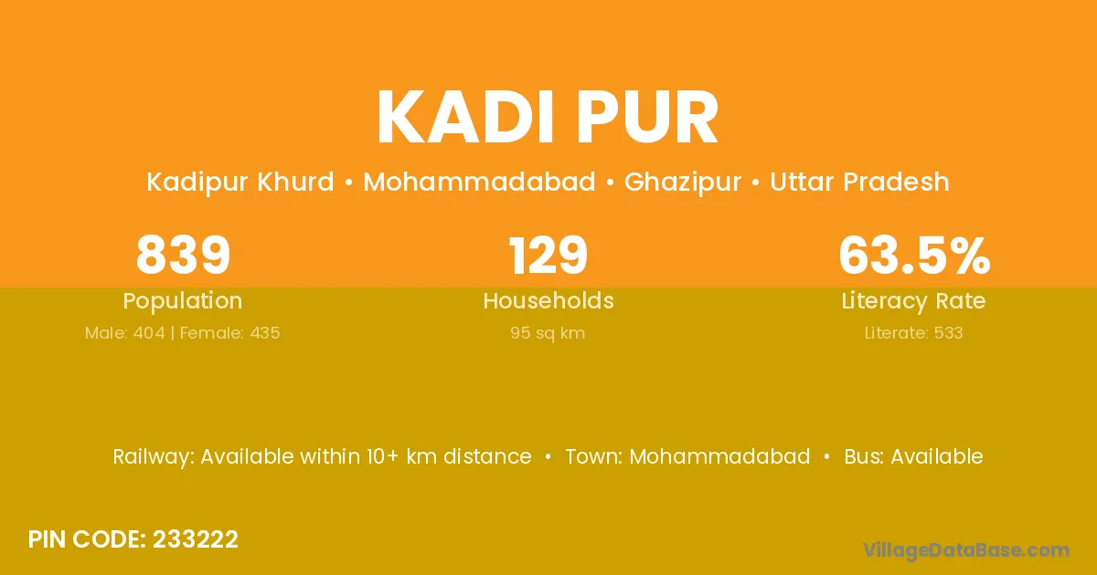 Kadi Pur village has a total population of 839 people, of which 404 are males and 435 are females.