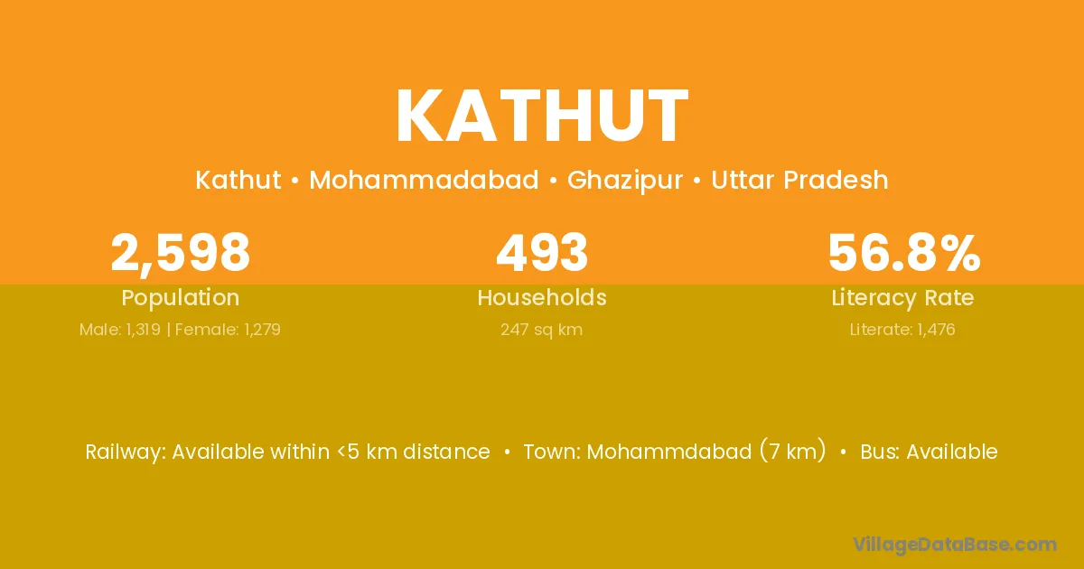 Mohammdabad (7 km) is the nearest town to Kathut village for major economic activities and is located approximately 7 km away.