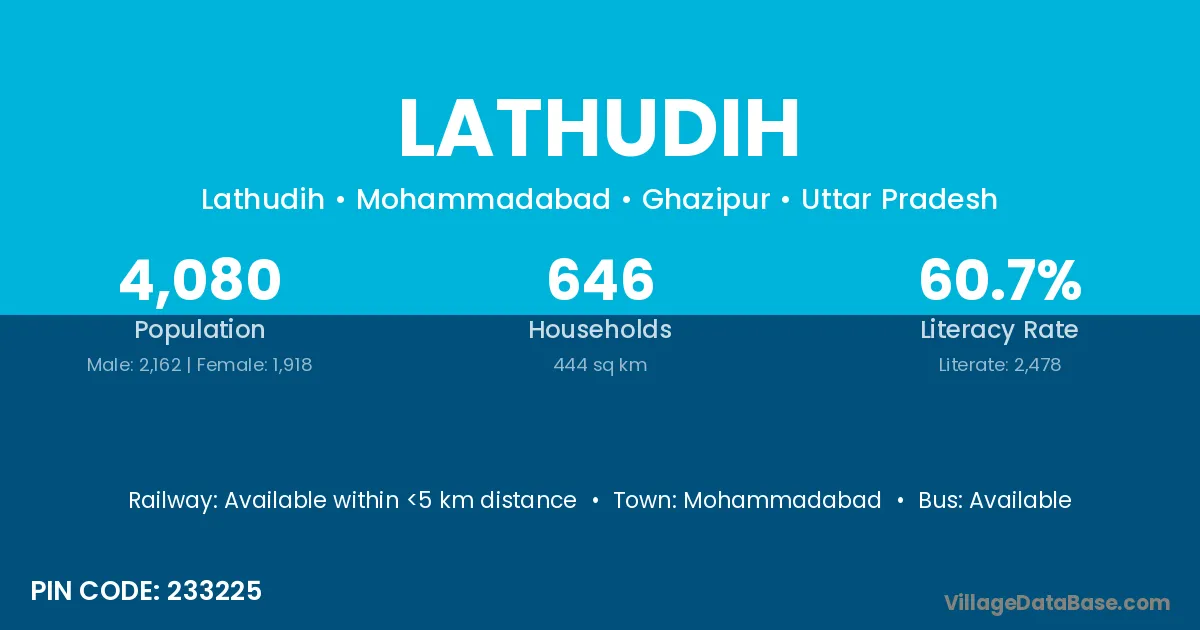 Lathudih village is located in the Mohammadabad Tehsil of the Ghazipur district in Uttar Pradesh .